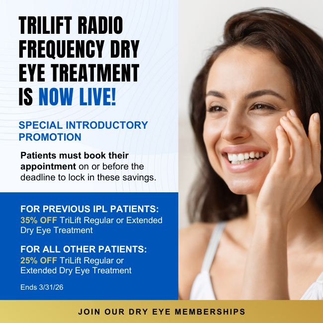 Lifetime Optometric’s Dry Eye Center provides innovative treatment options, including noninvasive technology like OptiLight IPL, LipiFlow, LLLT, and ZEST treatment. We also offer in-depth testing, including the Sjö Test and evaluating your omega-3 index, to identify the triggers of your symptoms.